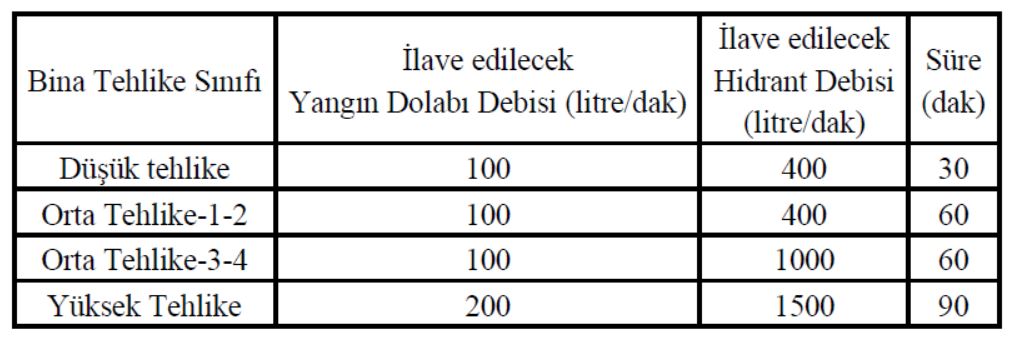 Görsel 3 – Ek-8/C Yangın Dolapları ve Hidrant Sistemi İçin İlâve Edilecek Su İhtiyaçları