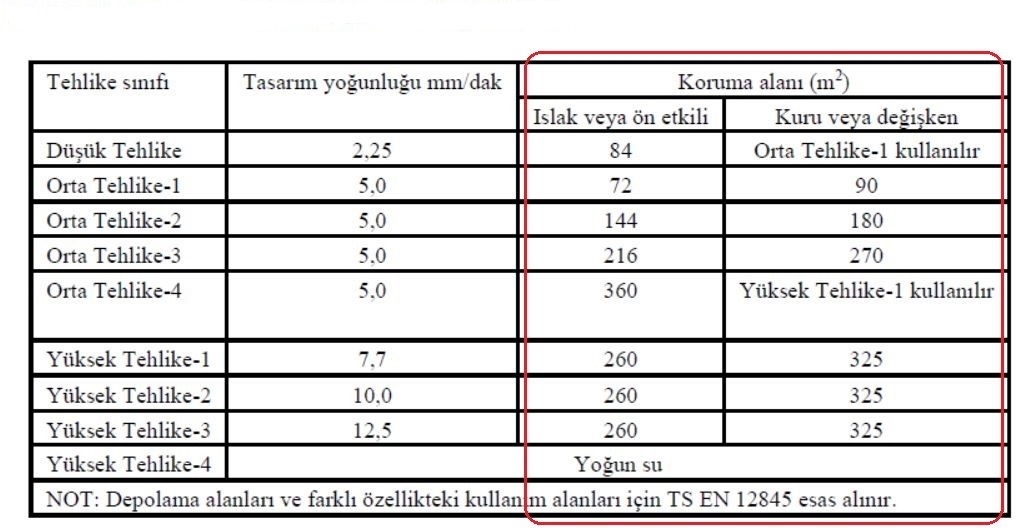 Belirli bir koruma alanı üzerinde gerekli minimum su uygulama yoğunluğunu gösterir. Bu bilgi, sistemin hangi tehlike sınıfına göre projelendirildiğini anlamada doğrudan önemli bir veridir.